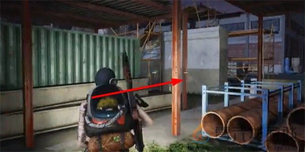 2、接着进入厂房一路顺着箭头位置前进。